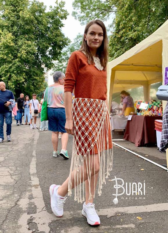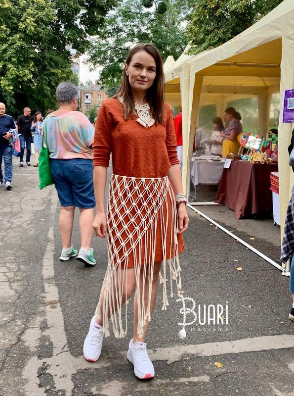 Трендов макраме Хустка-СІТКА стильно та оригінально прикрасить Ваш образ. Чудово поєднується як з святковим, так і повсякденним одягом.