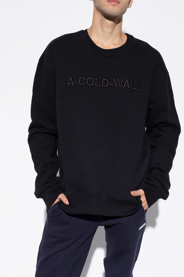 Black crewneck sweatshirt from A Cold Wall. Crafted from cotton, this style showcases an embroidered logo on the front and ribbed trims on the bottom hem and cuffs.
