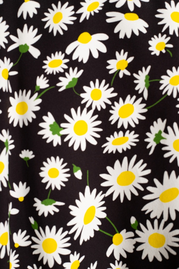 Black skirt from Saint Laurent. Fastened at the back with a zip and hooks & eyes, this design is decorated with a pattern in white, yellow and green.