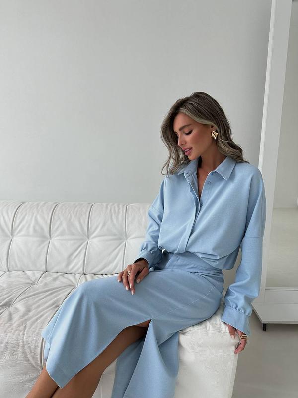 Юбка миди с разрезами и рубашка oversize тренд этого сезона❤️Состояние: НовоеЦвет:- 10, Бирюзовый 30D5C8 Бирюзовый