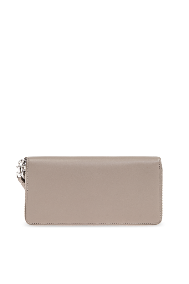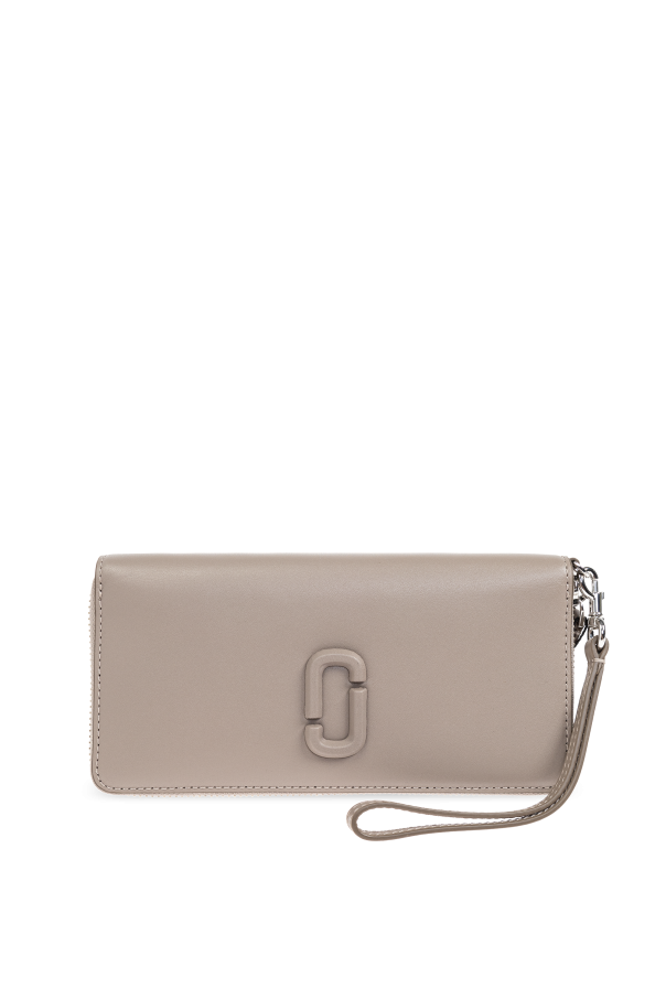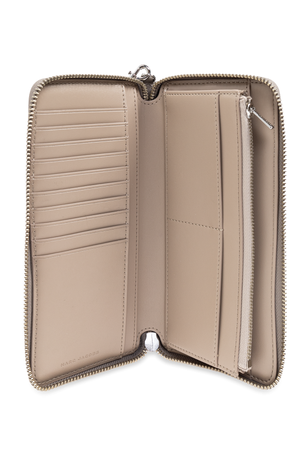 Introducing the exquisite The Marc wallet, a masterpiece from the esteemed fashion house of Marc Jacobs. This luxurious accessory is crafted from the finest smooth leather, bathed in a sophisticated beige hue that exudes elegance. Designed with a sleek rectangular silhouette, it features gracefully rounded edges and is adorned with the iconic double \"J\" metal logo, a testament to its distinguished lineage. The interior is thoughtfully organized with a zipper-secured pocket, a bill compartment, a coin pocket with zipper closure, two slip pockets, and ten card slots, ensuring unmatched practicality and organization. Complemented by a detachable wrist strap, this wallet seamlessly blends style and functionality, catering to those who value both fashion and convenience. Why Choose This Product? Elegant design with luxurious smooth leather Iconic Marc Jacobs double \"J\" logo Ample storage with ten card slots and multiple compartments Detachable wrist strap for versatile carrying
