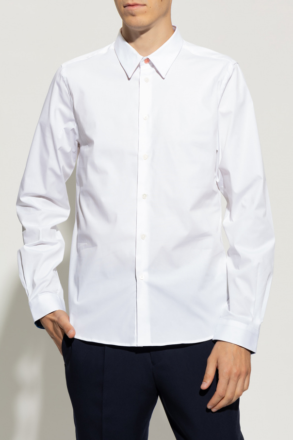 White shirt from PS Paul Smith. Made from organic cotton, this style features a classic fit, button fastenings and long sleeves with button cuffs.