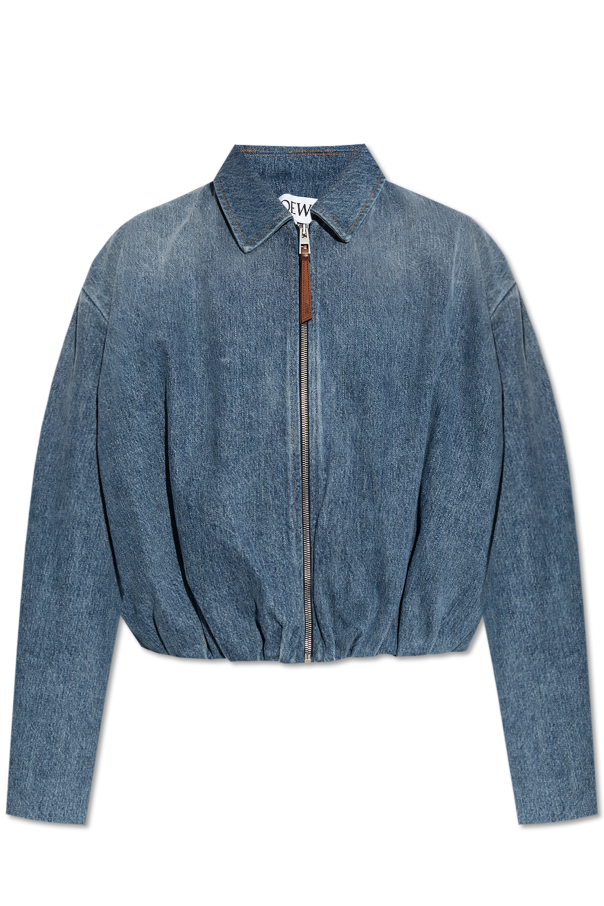 Introducing the Jeans Jacket from Loewe\'s exclusive collection, an epitome of sophistication blended with timeless denim charm. Crafted from classic blue denim, this jacket epitomizes simplicity and elegance. Designed with a relaxed fit and dropped shoulder line, it offers a casual yet refined appearance. The zipper closure, adorned with a visible leather pull, adds a touch of opulence. A shirt-style collar and a leather patch with the logo at the back further enhance its distinctive allure. The minimalist design, featuring two front slip pockets and an elastic hem, makes it perfect for everyday ensembles. This jacket seamlessly marries heritage and modernity, embodying Loewe’s tradition of innovation under the stewardship of Jonathan Anderson. Why purchase this product? Timeless Design: Classic denim with a modern twist. Exquisite Craftsmanship: High-quality materials and detailed finishes. Versatile Styling: Perfect for both casual and sophisticated looks. Signature Branding: Leather patch with logo for an iconic touch.