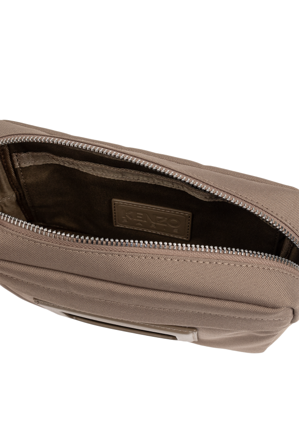 Introducing the Kenzo Logo Shoulder Bag—an exquisite creation from the exclusive collection of the iconic brand, Kenzo. This bag, enveloped in a sophisticated beige hue, is crafted from a durable synthetic fabric or canvas, ensuring both longevity and style. Its rectangular silhouette, accentuated by a top zipper closure, embodies a compact yet functional design, perfect for the modern minimalist. The pièce de résistance of this masterpiece is the prominent \"KENZO PARIS\" logo, elegantly displayed in white against the beige backdrop. The adjustable shoulder strap, complete with a metal clasp, allows for versatile wear, whether on the shoulder or cross-body. Inside, the bag features a lined compartment and a slip pocket, complemented by an internal brand logo plaque, exemplifying Kenzo\'s attention to detail. Why Choose This Product? Represents modern minimalism with a bold brand statement. Crafted from durable materials for everyday use. Adjustable strap offers versatile styling options. Features a practical interior with a slip pocket for convenience. Synonymous with the renowned Kenzo heritage and design innovation.
