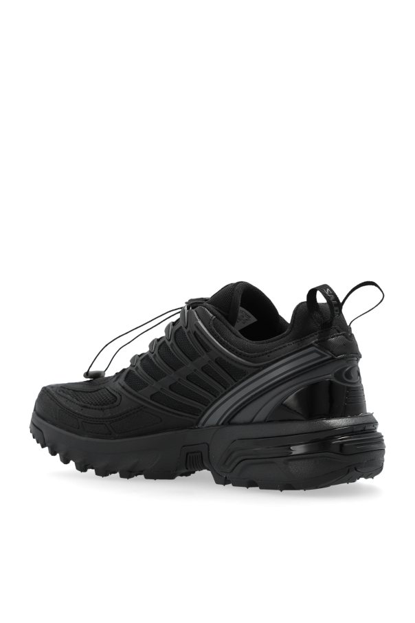 Introducing the exclusive ACS PRO GTX sports shoes by Salomon, an epitome of sophistication and functionality seamlessly blended into a low-top design. These sleek, black shoes are meticulously crafted with a blend of synthetic fabrics and leather, ensuring durability and unparalleled comfort. The ACS PRO GTX sports a dynamic, tonal pattern that exudes elegance, complemented by a breathable mesh upper reinforced with sturdy synthetic overlays. On the lateral side, the designer\'s logo is prominently displayed, a testament to its prestigious lineage. Featuring a quick-lace system, these shoes offer ease of wear, while the robust outsole, marked by a pronounced tread, promises exceptional traction on diverse surfaces. A rear pull tab further enhances the convenience of donning these exquisite shoes. Perfectly suited for daily wear and athletic pursuits, the ACS PRO GTX incorporates advanced technologies such as Gore-Tex waterproofing, ensuring comfort in varying weather conditions. The all-black color scheme not only adds versatility but also a touch of refined elegance. Why Choose This Product? Elegant, dynamic design with a low-top profile Durable construction with breathable materials Quick-lace system for effortless wear Exceptional traction with a robust outsole Advanced Gore-Tex waterproofing technology Versatile black color for universal appeal
