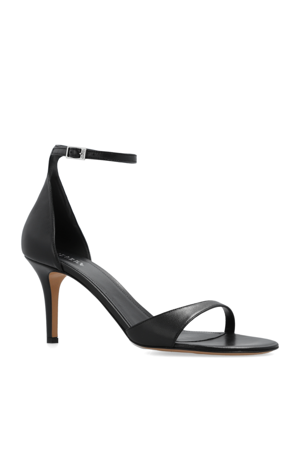 Black ‘Ailisa’ heeled sandals from Isabel Marant. Crafted from leather, this round toe design sits on a brown leather sole and fastens with an adjustable buckled ankle strap.