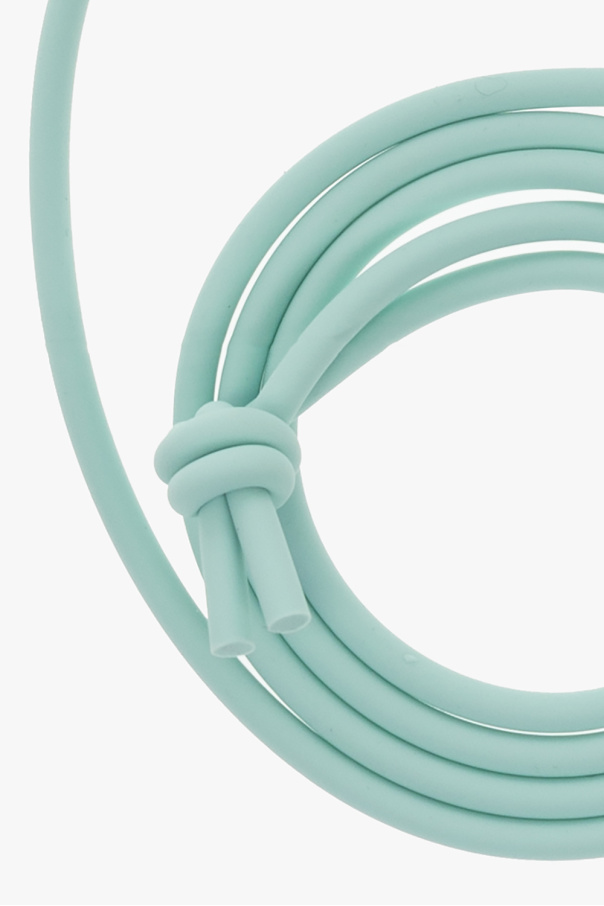 Light blue iPhone 14 Pro Max case from Bottega Veneta. Made of silicone, this item showcases a tactile ‘Intreccio’ weave design. Strap included.