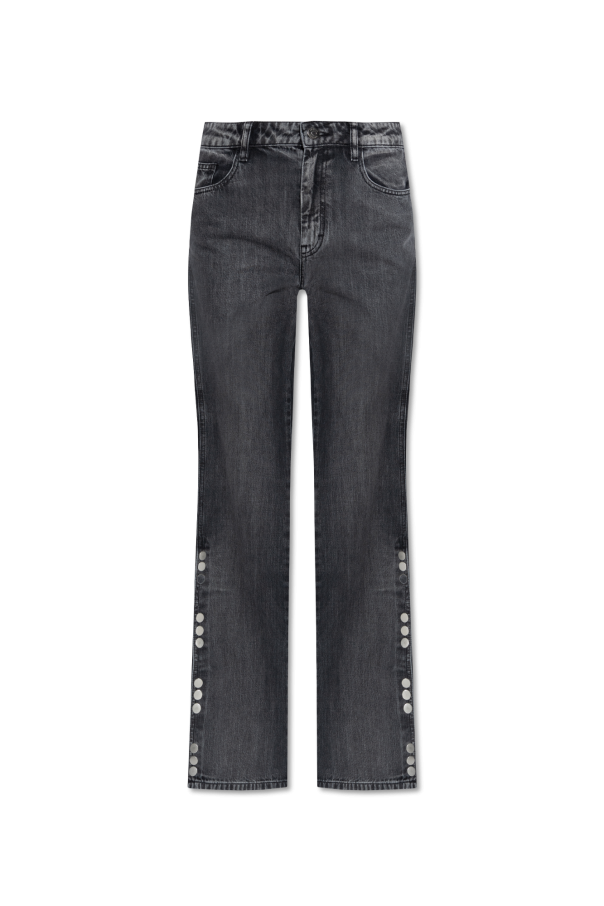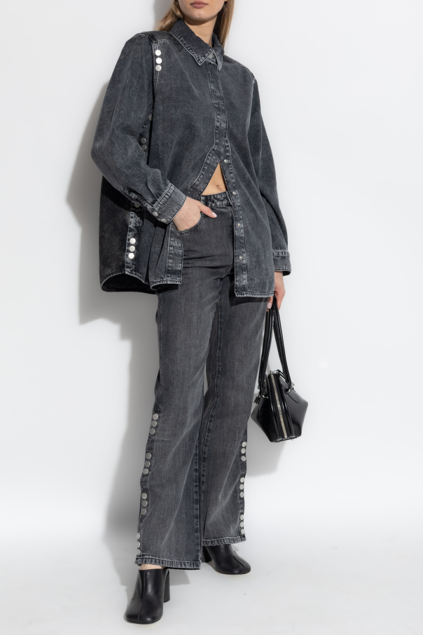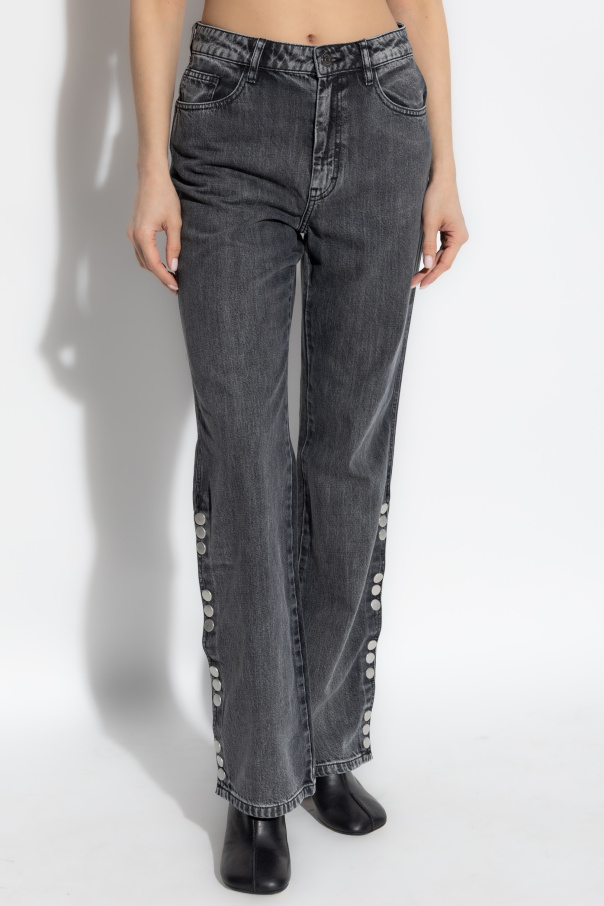 Introducing the exquisite Zuva Jeans by Gestuz, a paragon of refined elegance and contemporary style. Crafted with a harmonious blend of cotton, lyocell, and modal, these jeans offer unparalleled comfort and durability. The predominantly gray hue embodies sophistication, while the regular fit with straight legs ensures timeless appeal. Distinguished by rows of decorative buttons or studs along the side seams, these jeans exude a unique charm that sets them apart from conventional designs. The stretch fabric gracefully adapts to the contours of the body, offering a perfect silhouette. Equipped with classic front and back pockets, they combine practicality with aesthetic allure. Why Choose These Pants? Exclusive design by renowned brand Gestuz. Elegant gray color with unique decorative details. Comfortable stretch fit for a flattering look. Functional pockets for everyday convenience. Secured with a zipper and button for easy wear.