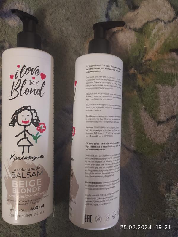 Профессиональный продукт косметики для волос от украинского производителя и разработчика, компании, Красотуля. Предназначен для ухода за осветленными волосами и натуральными волосами светлых оттенков. Пигмент, который входит в состав бальзама, нейтрализует желтый оттенок на осветленных волосах, добавляя желаемые оттенки. Сбалансированная формула Krasotulia Balsam anti - yellow effect, делает волосы гладкими и блестящими, облегчает расчесывание, создает антистатический эффект, предотвращает пористость волос. Тонирующий бальзам для волос Krasotulia является хорошей альтернативой для сохранения эффекта осветленных волос.