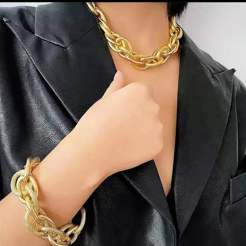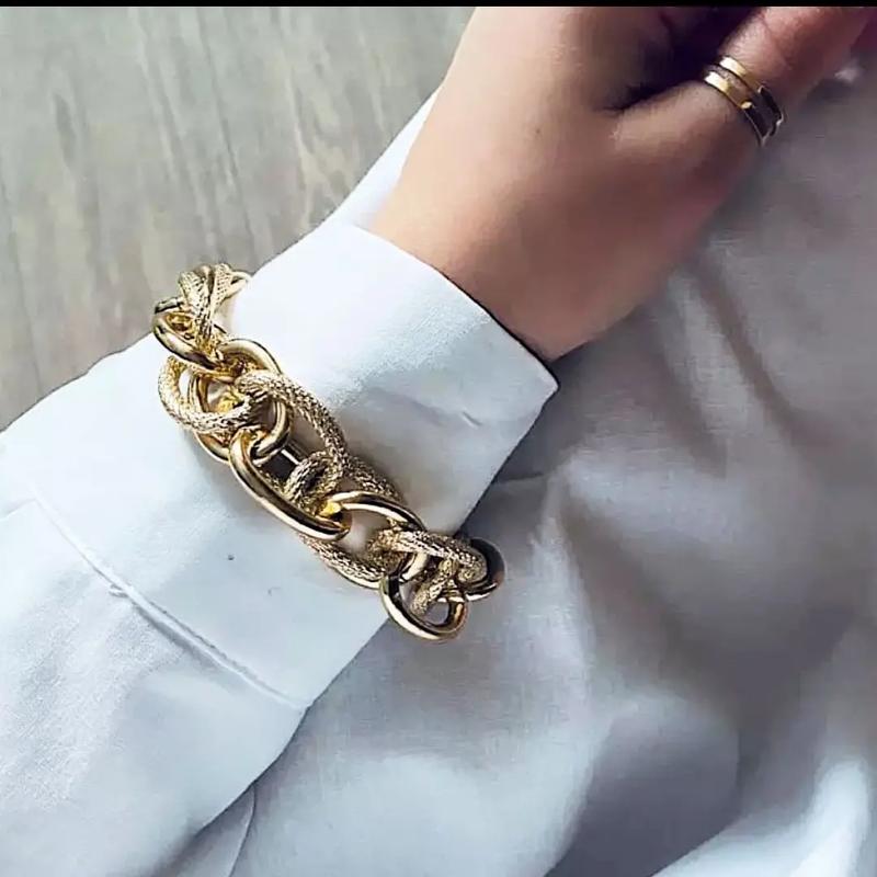 Длина браслета - 18 см + 6 см регулирующая цепочка. Ширина-2 см. Если браслетик болееват, можно убрать просто лишние звенья!К браслету есть цепочка с таким же плетением, можно купить комплектиком!