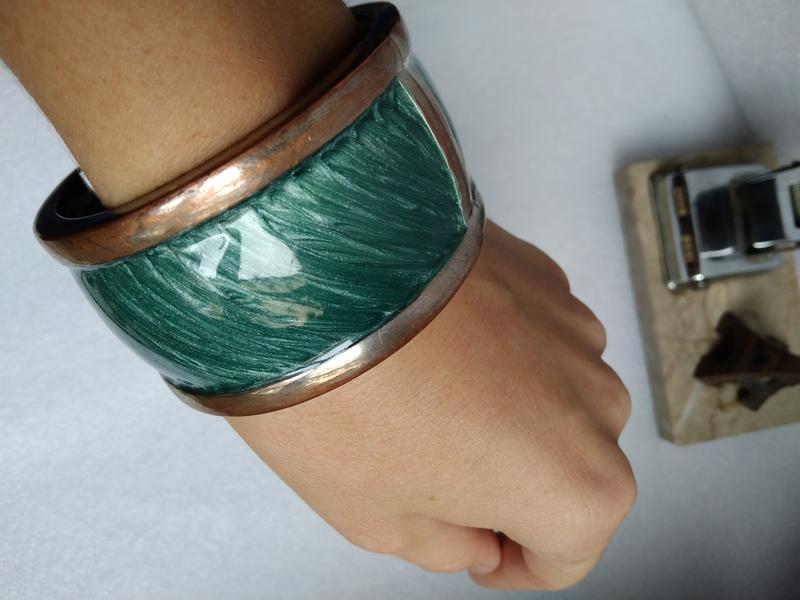Масивний браслет, важкуватий (вагу не знаю), відкривається гарно, без дефектів.