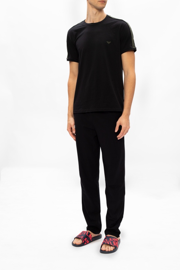 Black slides form Versace Jeans Couture. Set on black rubber sole, this pair is decorated with an embossed logo in pink.