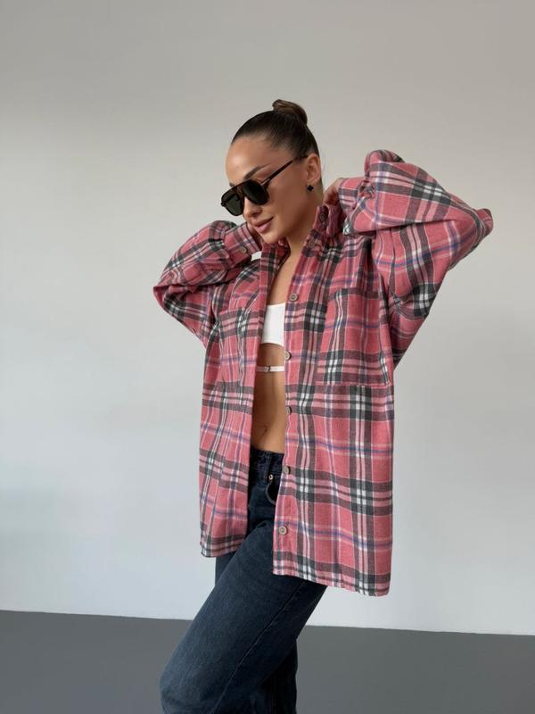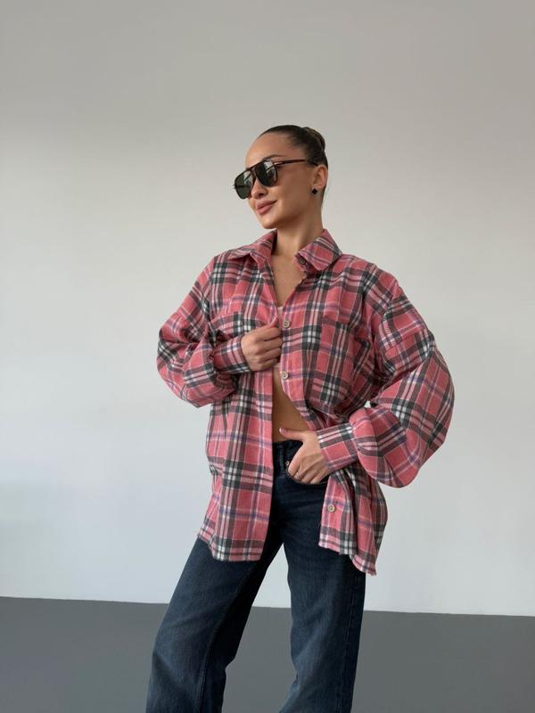 Цвет: сине-бежевая клетка, серо-черная клетка, мятно-серая клетка, сине-молочная клетка, розово-серая клетка.Очень мягкая и приятная к телу рубашка с пуговицами.