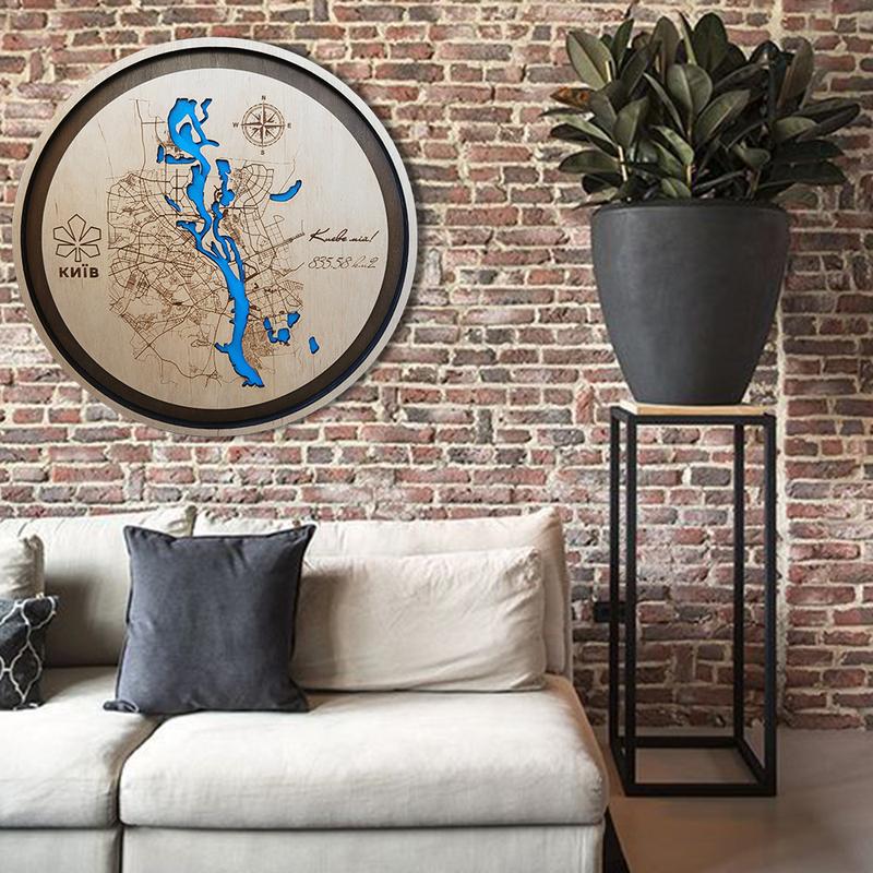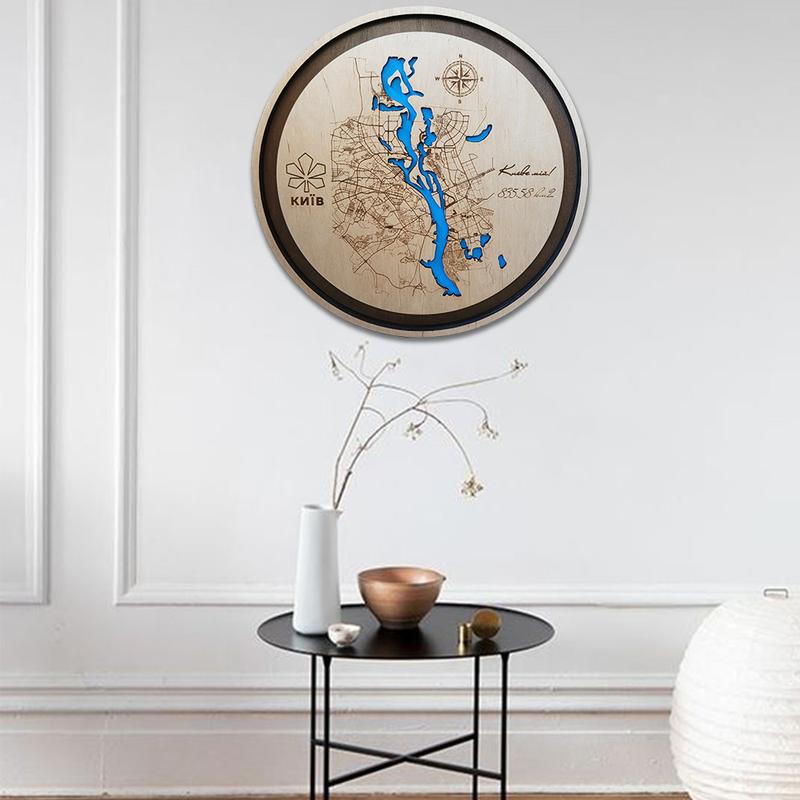 Круглая настенная карта моежт быть изготовлена для ЛЮБОГО города Украины или