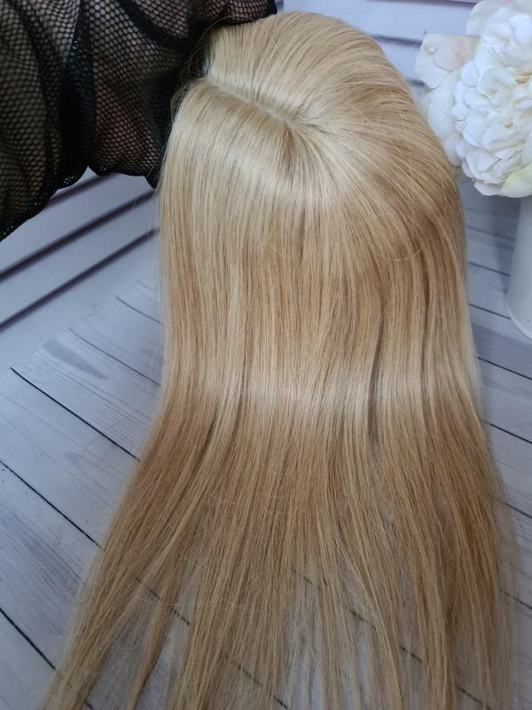 Накладка на макушку из натуральных человеческих волос на пробор с имитацией кожи головы.Накладочка очень хорошей длинны плотности и красивого цвета как теплый блонд.По пробору выполнена имитация кожи головы ручной работы.Волосы мягкие рассыпчатые ровной структуры Новая и можно на подарок.Кто купит будет очень доволен покупкой.