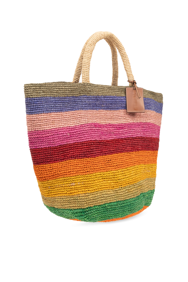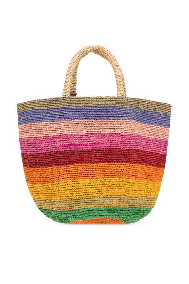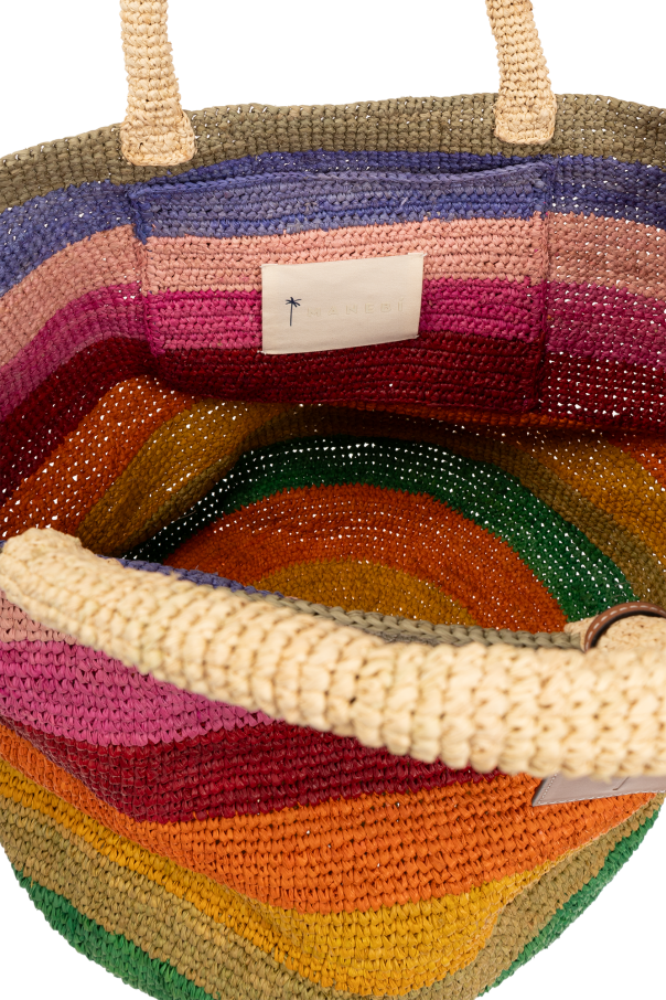 Introducing the ‘Summer’ Shopper Bag by Manebí, a vibrant and practical addition to your summer wardrobe. Crafted with meticulous attention to detail, this bag features a kaleidoscope of rainbow stripes, encompassing shades of blue, pink, red, yellow, and green. The classic, rounded shopper shape, which gracefully expands towards the top, allows for the comfortable carriage of numerous items, making it an ideal companion for your daily adventures or beach outings. Made from intricately woven raffia, this bag exudes a unique texture and appearance that is both durable and eco-friendly. Complementing its colorful body are two robust, woven handles, ensuring a cohesive and stylish look. A distinctive leather detail adorned with the Manebí logo adds a touch of luxury, signifying the bag\'s exclusive nature. The interior reveals a branded label, asserting the bag\'s authenticity and high quality. With dimensions of 40cm in height and 57cm in width, it’s perfectly sized for all your essentials and more. Why Purchase This Product? Combines functionality with a unique, handcrafted look. Constructed from durable, natural fibers for long-lasting use. Features an exclusive design element with the designer\'s logo. Spacious yet elegant, perfect for a variety of occasions.