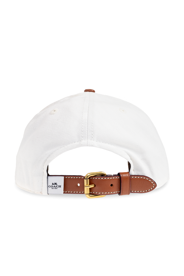 Introducing the Logo Cap by Coach, a paragon of exquisite craftsmanship and understated elegance. This cream-colored cap is adorned with a prominent, embroidered brown \"C\" logo, epitomizing the brand\'s commitment to luxury and style. The cream visor is meticulously finished with a brown edge, showcasing unparalleled attention to detail. Crafted from premium cotton, this cap promises comfort and durability, while the adjustable brown leather strap with a metal buckle ensures a perfect fit. Designed as a unisex accessory, this cap seamlessly complements both sophisticated and casual attire, embodying the quintessential American style that Coach is renowned for. Why Choose This Product? Iconic Coach design with a bold embroidered logo High-quality cotton for superior comfort Adjustable leather strap for a customized fit Versatile style suitable for any occasion