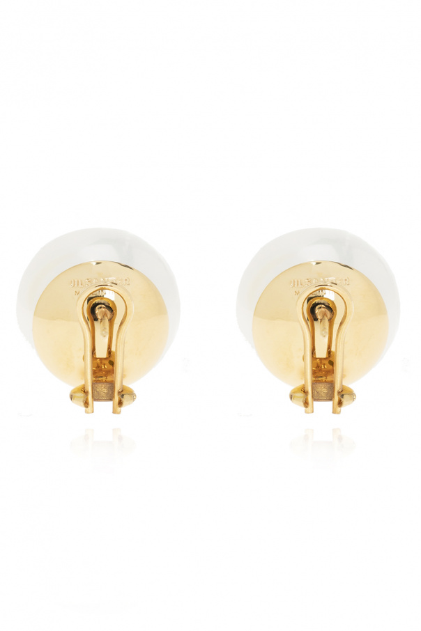 Gold-tone earrings from Jil Sander. Hand-crafted from brass, this clip-on pair is decorated with a white pearl.