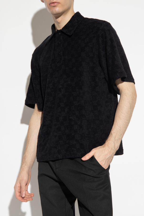 Black ‘Towelling Monogram’ polo shirt from MISBHV, the ‘Garden Of Dreams’ collection. Fastened with buttons, this short sleeve design is decorated with a monogram pattern.