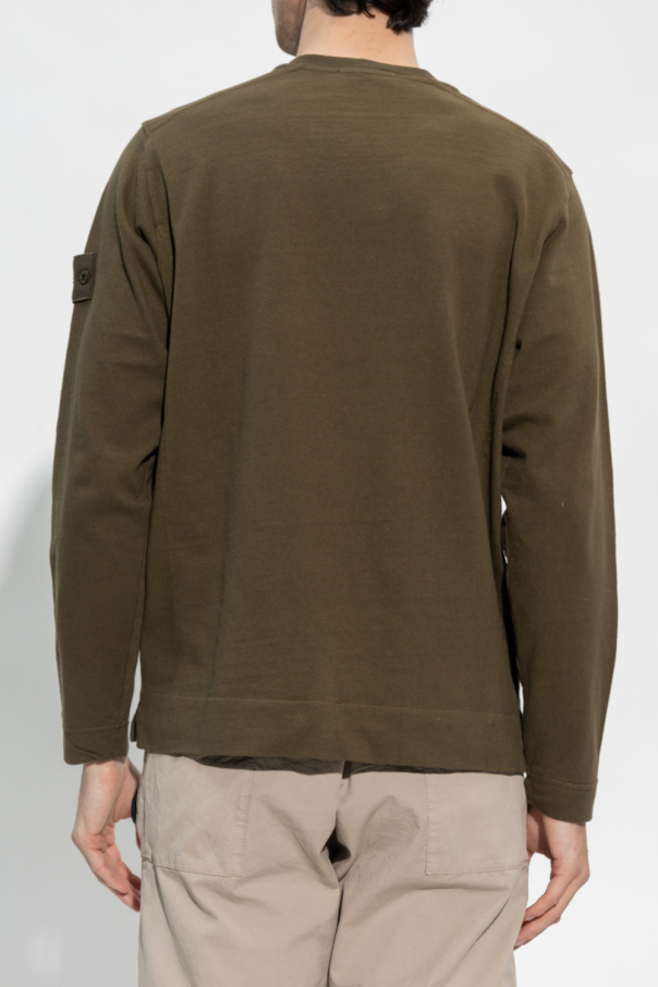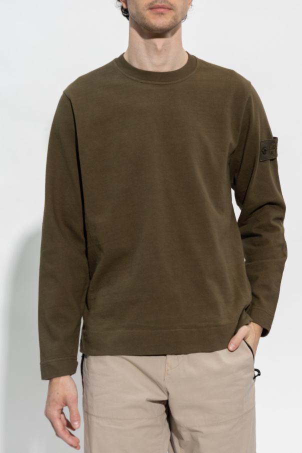 Dark green crewneck sweatshirt from Stone Island. Crafted from cotton jersey, this style showcases the brand\'s signature logo patch in dark green, long sleeves and ribbing on the collar, bottom hem and cuffs.