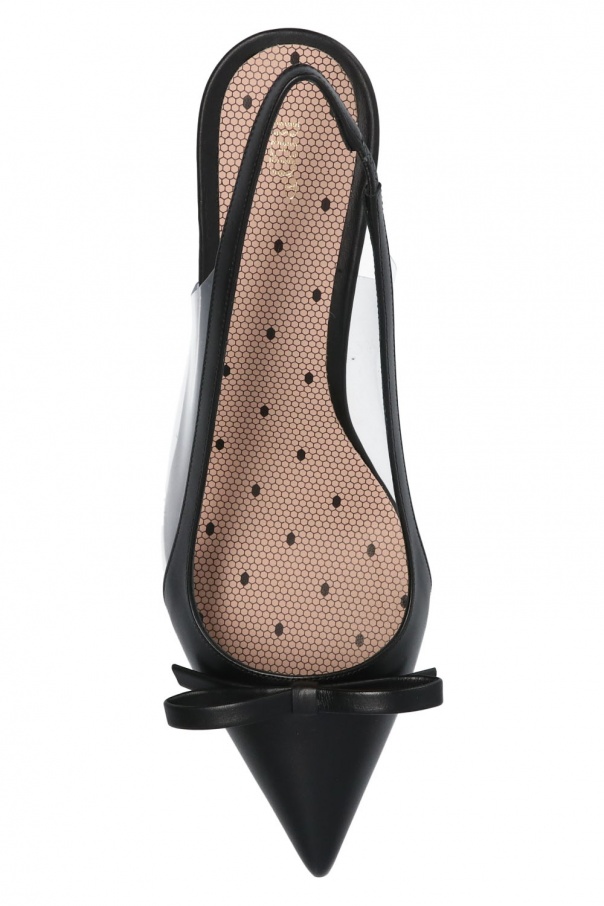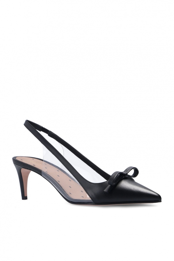 Black ‘Sandie’ slingback pumps from Red Valentino. Crafted from calf leather, this item is distinguished by a bow detail and transparent inserts. It also features pointed toe and pink leather sole.