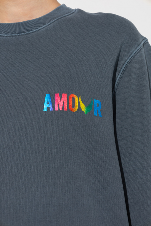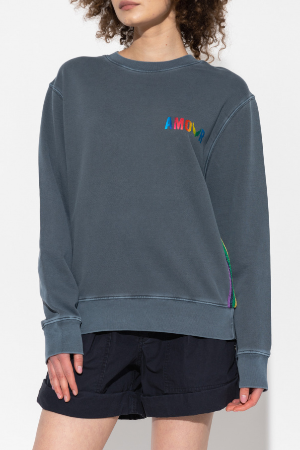 Grey ‘Simba’ sweatshirt from Zadig & Voltaire. Crafted from cotton, this style showcases a colourful Amour print, colourful lurex tapes sewn on the sides and elasticized trims on the bottom hem and cuffs.