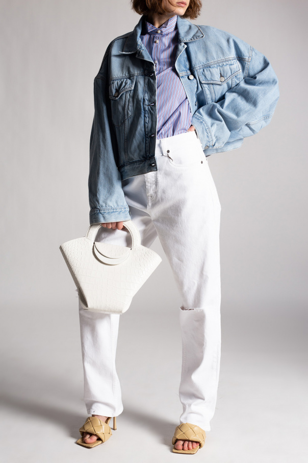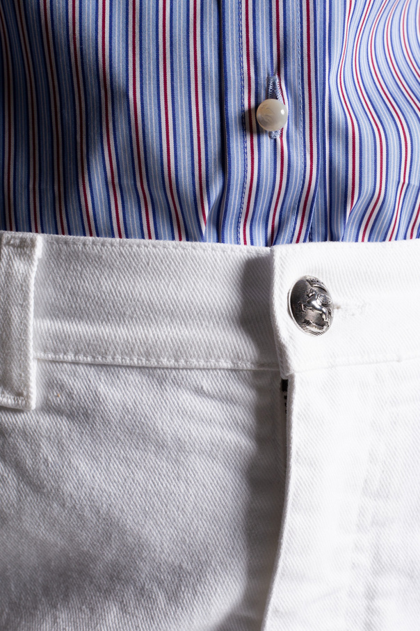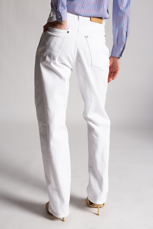 White distressed high-waisted jeans from Etro. Fastened with a zip and button, this straight leg design is complete with five slip pockets.