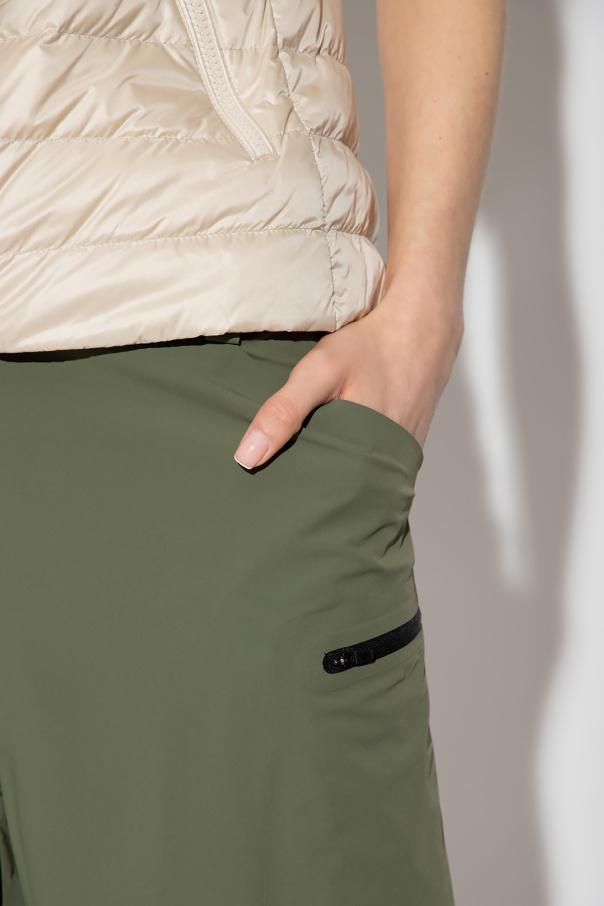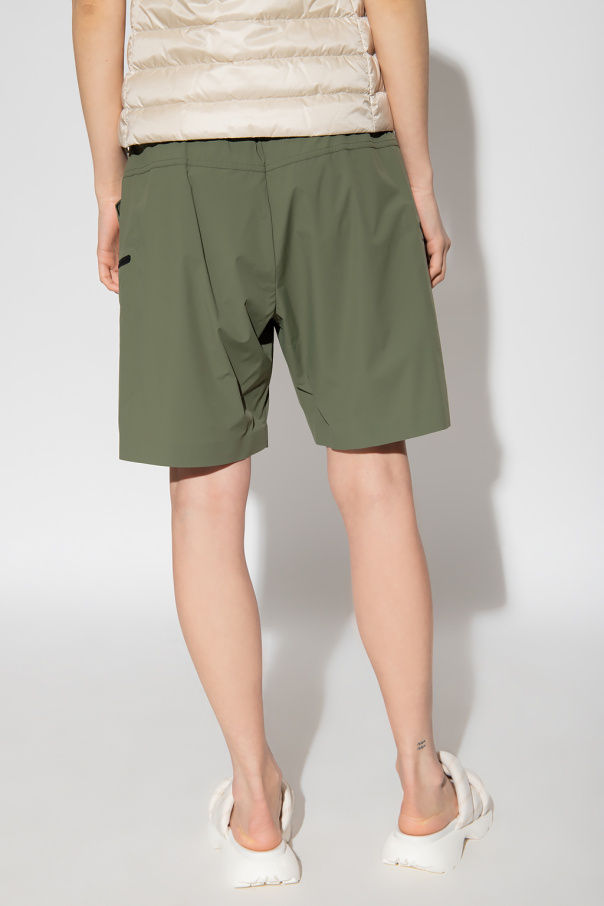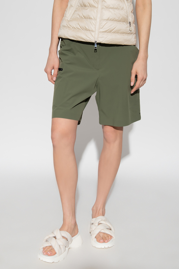 Khaki shorts from Moncler Grenoble, the ‘Moncler Grenoble Day-Namic’ collection. Fastened with a zip and snaps, this garment features a logo print, two slip pockets, two zip pockets and side slits.