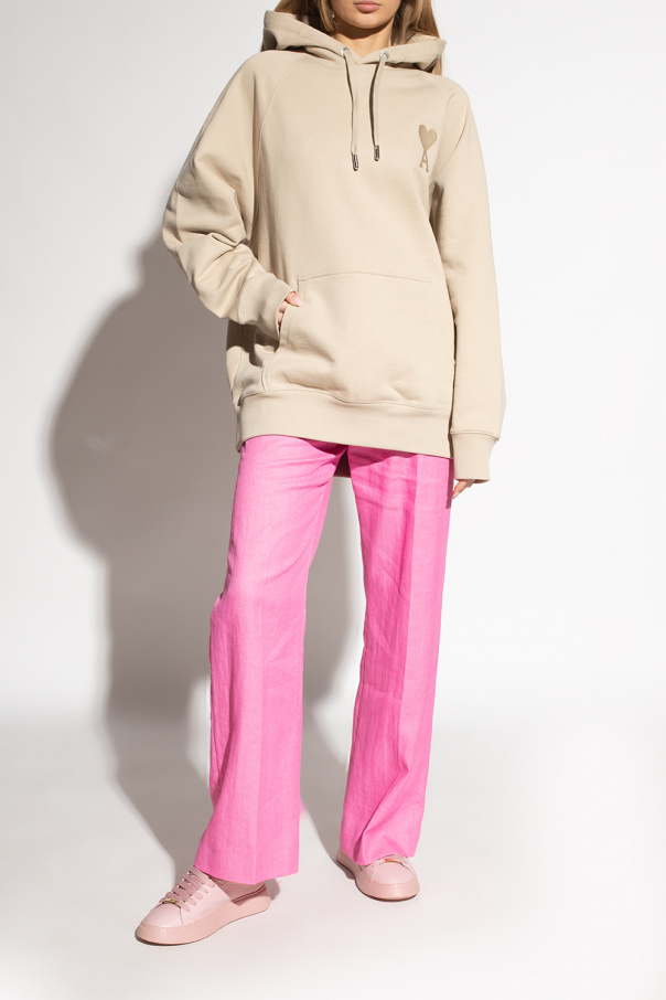 Light pink ‘Temple Low’ sneakers from Philippe Model. Made of leather, this lace-up pair features logo patches, gold-tone logo print and light pink rubber sole.