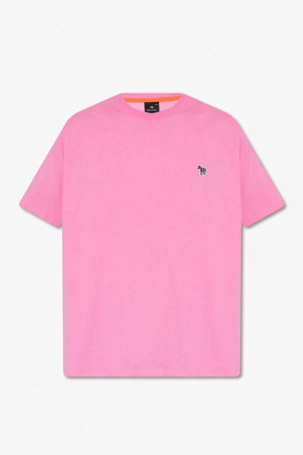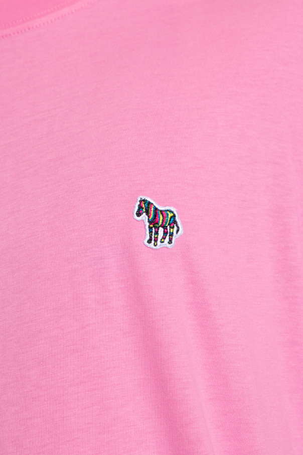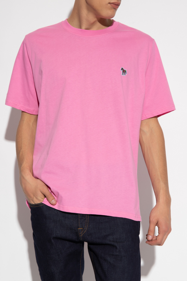 Pink crewneck T-shirt from PS Paul Smith. Made of cotton, this short sleeve design is decorated with the brand’s signature multicolored patch with a zebra motif.