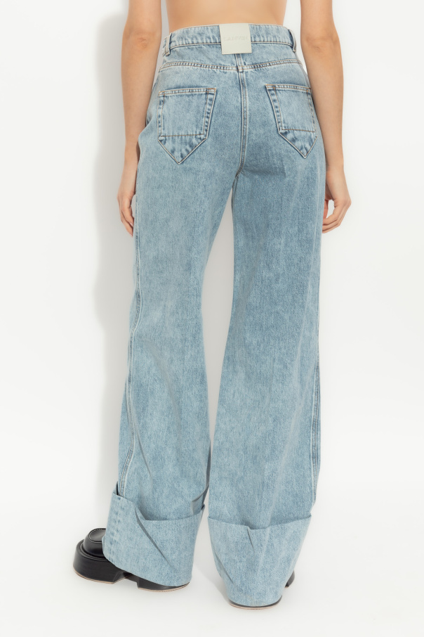 Presenting the Boyfriend Fit Rolled Hem Jeans from the exclusive Lanvin collection, an epitome of modern design and classic allure. Crafted from premium 100% cotton denim, these jeans showcase a refined light blue hue, accentuated with subtle distressing for a casually sophisticated flair. The jeans boast a timeless boyfriend cut with wide legs, elegantly rolled at the hem, imparting a chic and relaxed silhouette. Standard front and back pockets, along with a classic stitch on the rear pocket, provide both functionality and style. A distinguished leather patch at the waistband, likely adorned with the designer\'s logo, adds a touch of luxury. Designed with a button and zipper closure, these jeans are a testament to the unparalleled craftsmanship of Lanvin, a house steeped in history since its inception in 1889 under Jeanne Lanvin\'s vision of \'le Chic Ultime\'. Why Choose This Product? Exquisite blend of modern design and classic fabric. Versatile and timeless boyfriend fit. Crafted by Lanvin, a paragon of haute couture. Unique rolled hem for added style. Premium non-stretch denim for durability.