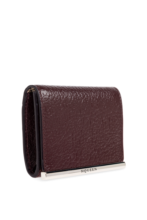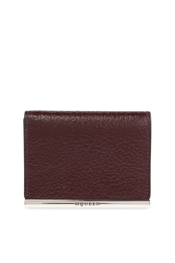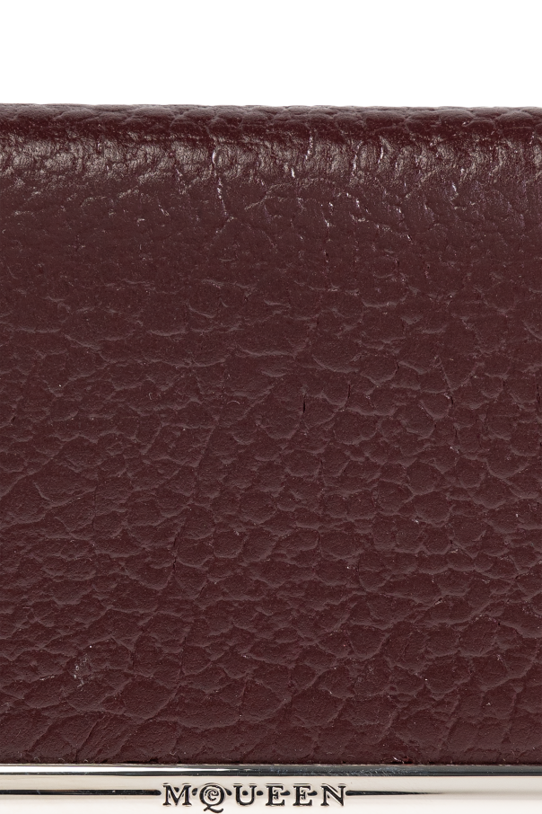 Introducing the Leather Wallet from the exclusive collection of Alexander McQueen, a masterpiece of elegance and luxury. Crafted from richly textured lambskin in an opulent burgundy hue, this wallet is a testament to sophistication and style. The exterior is adorned with a distinctive metal detail bearing the iconic \"McQueen\" insignia, accentuating the prestige of the brand. Its classic shape and minimalist design make it a timeless accessory, while the interior, finished with a snake-skin patterned lining, adds a unique touch of flair. Designed for women, this wallet offers ample space for cards, coins, and banknotes, blending functionality with exquisite artistry. It embodies the harmonious contrasts that define McQueen’s ethos—merging history with modernity, tradition with innovation. Why Choose This Product? Crafted from 100% lamb leather for a luxurious feel Exclusive burgundy color with a distinctive metal \"McQueen\" detail Minimalist design with a unique snake-skin pattern interior Functional with spaces for cards, coins, and banknotes A timeless piece from the iconic Alexander McQueen