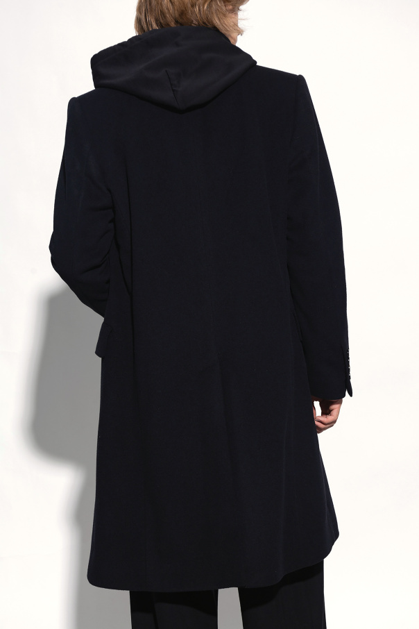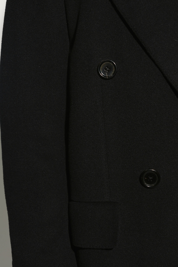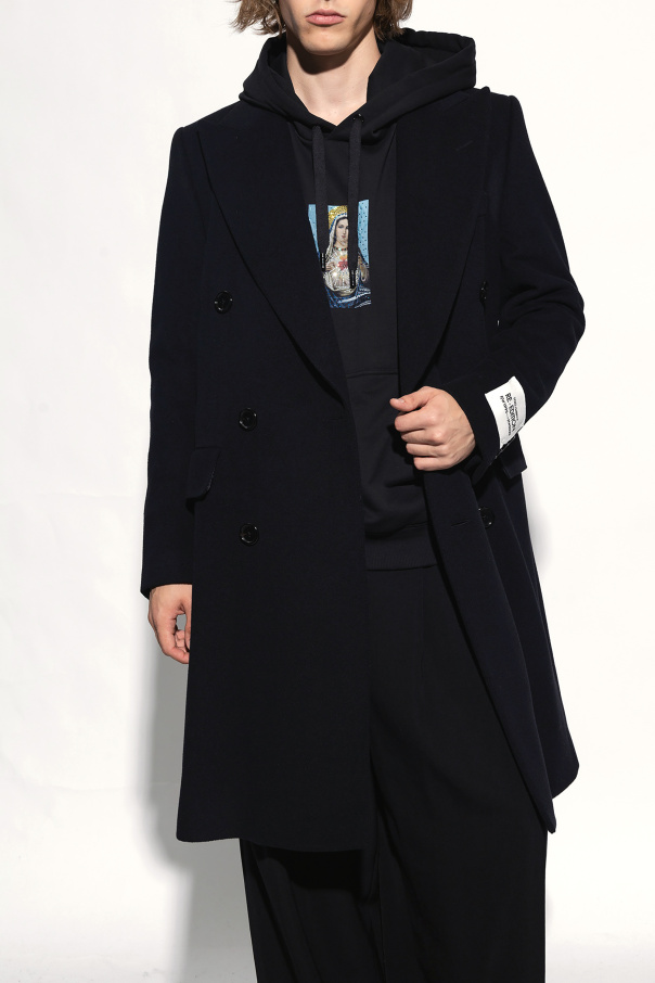 Black coat from Dolce & Gabbana, the ‘RE-EDITION F/W 1995’ collection. Made from a wool and cashmere blend with a double-breasted silhouette, this style features button fastenings, peak lapels, one welt pocket, two flapped pockets and long sleeves.