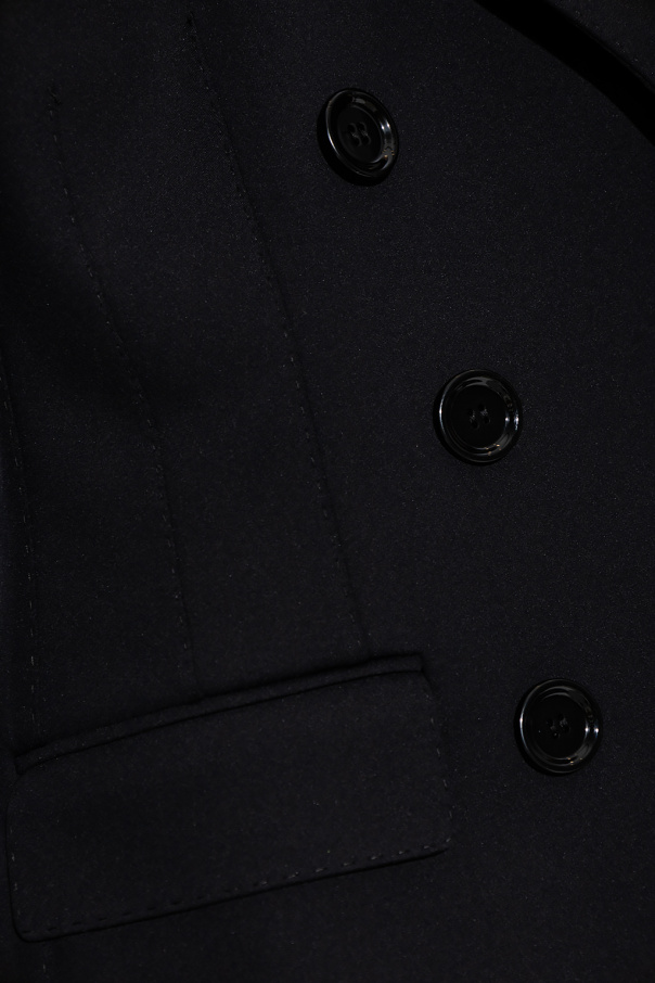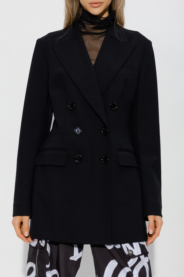 Black blazer from Dolce & Gabbana. Fastened with buttons, this garment features peak lapels and two flap pockets.