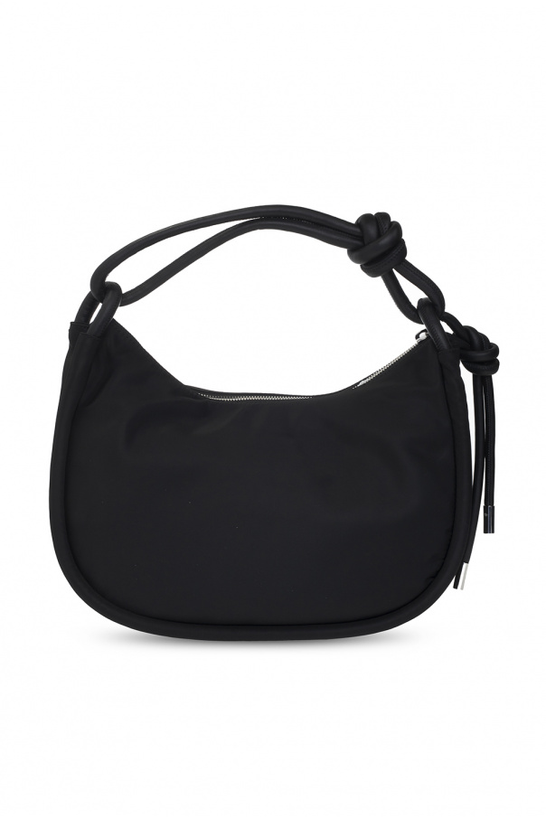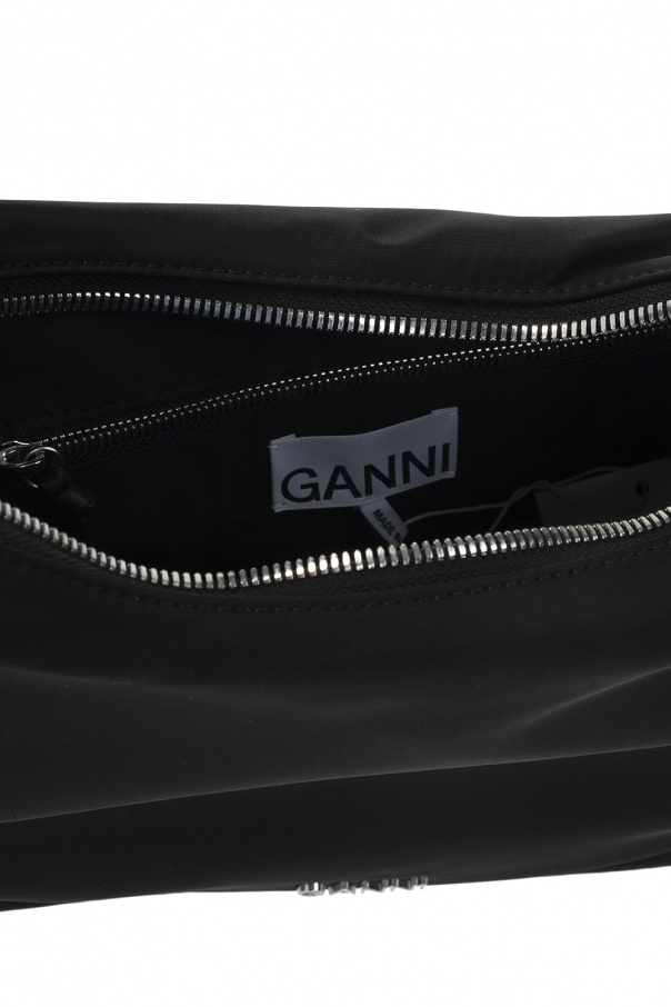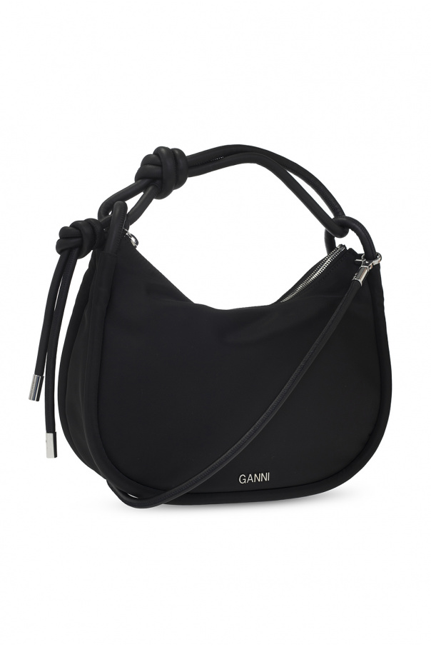 Black shoulder bag from Ganni. Fastened with a zip with a tassel, this garment features leather trims, metal logo detail, two half-round handles, detachable strap, silver-tone metal hardware and one internal compartment with one zip pocket.