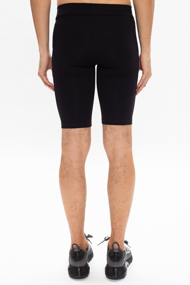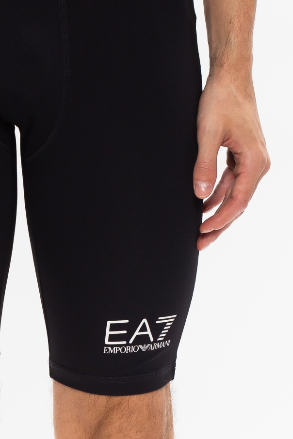 Black shorts from EA7 Emporio Armani. This design features an elastic waistband and a white logo print.