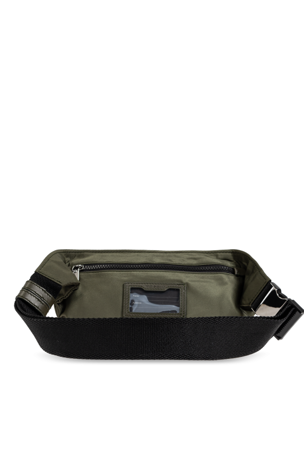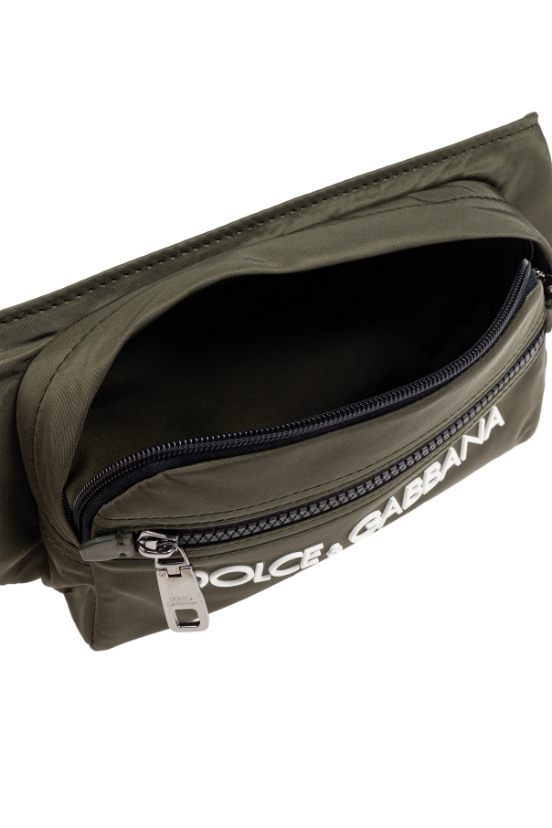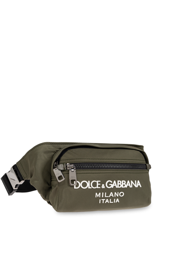 Introducing the Khaki Belt Bag from the exclusive collection by the renowned house of Dolce & Gabbana. This exquisite piece epitomizes the perfect blend of style and functionality, crafted for the discerning gentleman who values both luxury and practicality. With its rectangular shape and slightly rounded edges, this belt bag exudes a refined elegance. The predominant khaki hue is both versatile and sophisticated, while the durable synthetic material ensures longevity. The prominent white logo, \"DOLCE & GABBANA MILANO ITALIA,\" emblazoned on the front, adds a bold statement to the design. This bag features two convenient zippers: a main horizontal zipper and an additional smaller zipper on the front pocket. The adjustable black strap with a metal buckle allows for versatile wear, whether around the waist or over the shoulder. Inside, you\'ll find a spacious main compartment and an extra front pocket, perfect for organizing your essentials. A transparent pocket on the back provides a practical spot for an ID or cards. Why Choose This Product? Exclusively crafted by Dolce & Gabbana Elegant khaki color with a bold logo Durable synthetic material Versatile wear with an adjustable strap Multiple pockets for organized storage