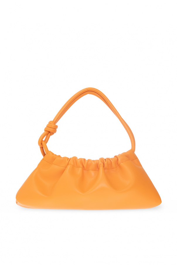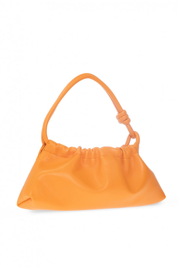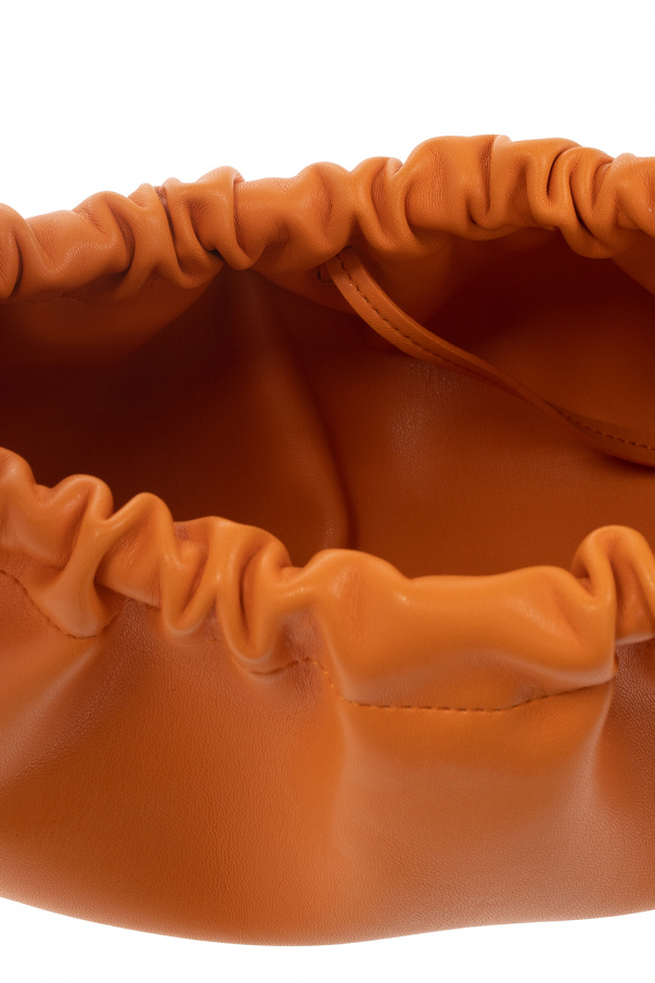 Orange ‘Valerie’ shoulder bag from Nanushka. Made of vegan leather, this model fastens with drawstrings and has two half-round straps and one internal compartment.