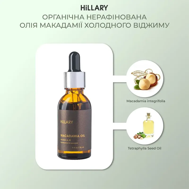 Органічна нерафінована олія макадамії холодного віджиму Hillary Organic Cold-Pressed Macadamia Oil 30 мл.