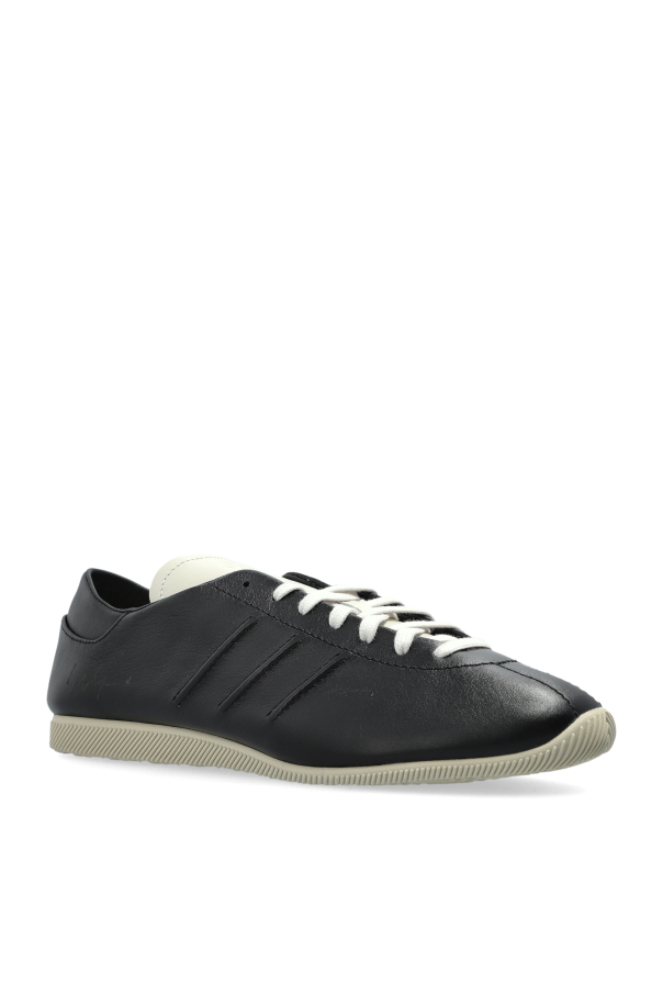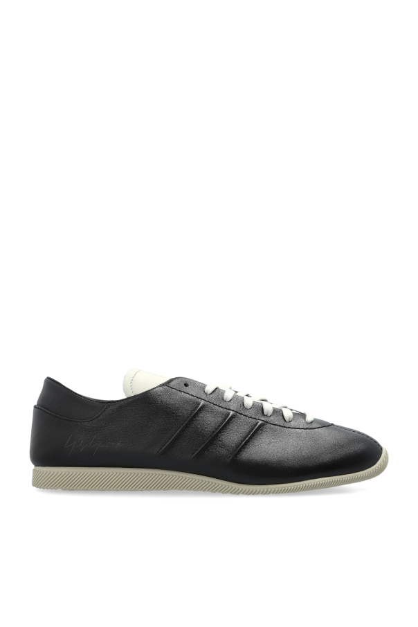 Introducing the exquisite Japan sneakers, a testament to the artful collaboration between the avant-garde designer Yohji Yamamoto and the iconic sports brand adidas. These black sneakers, an embodiment of refined elegance, are crafted from smooth, premium leather, exuding sophistication. The sleek silhouette features a minimalist upper with subtle stitching along the sides, enhancing their understated charm. A distinctive embossed \"Y-3\" logo graces the tongue, marking the illustrious partnership. The shoes are completed with a contrasting white lace system, imbuing them with a sporty edge. Underfoot, a light-hued sole with a grooved tread ensures superior traction, further adorned by the adidas logo. With their low-profile design, these sneakers seamlessly transition from casual to more polished ensembles, making them an essential addition to any discerning wardrobe. Why Choose This Product? Crafted from luxurious leather for lasting quality and comfort. Distinctive design by renowned designer Yohji Yamamoto. Versatile style suitable for both casual and elegant attire. Enhanced grip with a uniquely designed sole. Iconic branding with Y-3 and adidas logos.