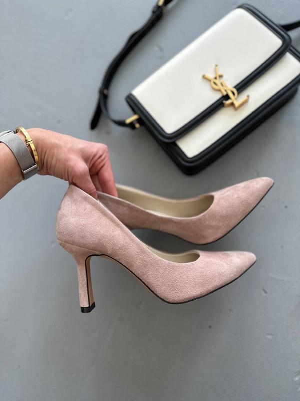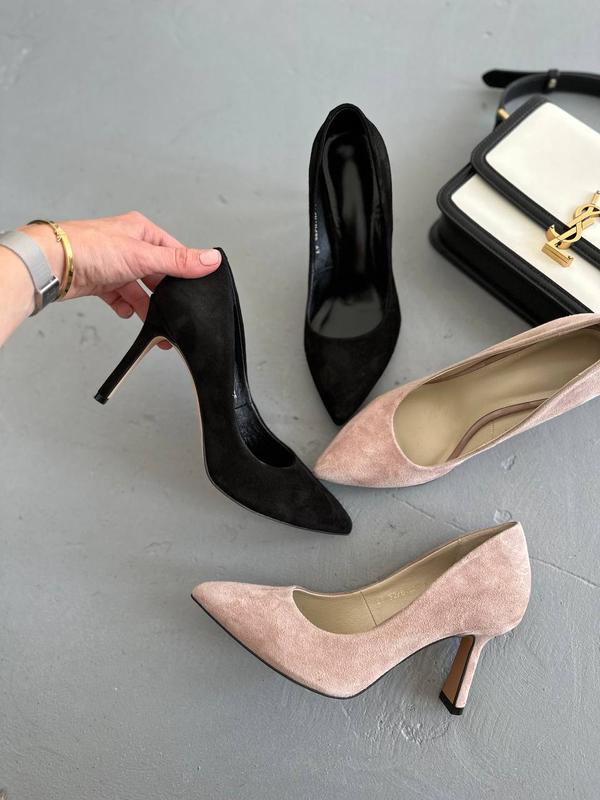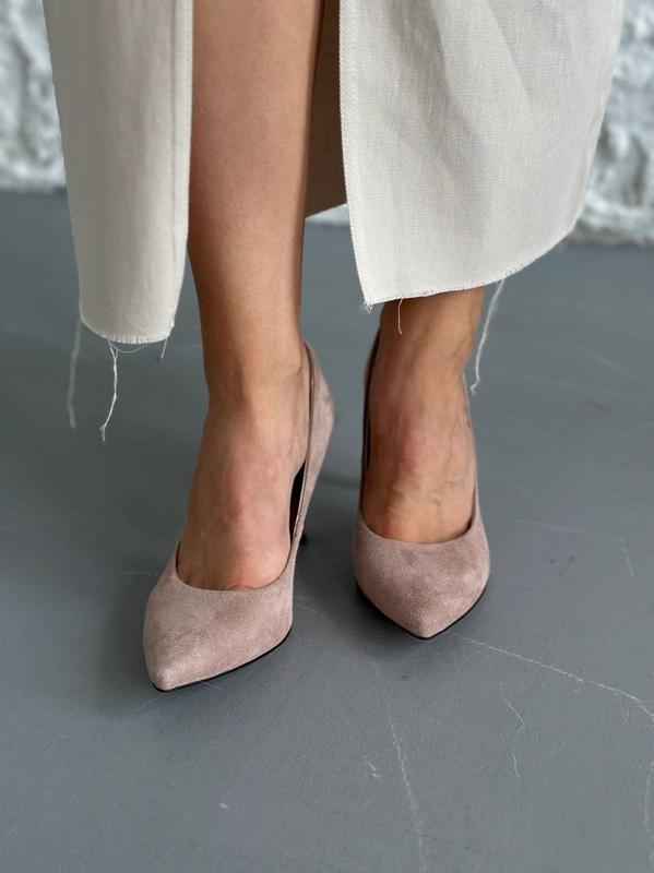Класичні бежеві туфлі човники жіночі,лодочки,на підборі,демі,велюрові/велюр-жіноче взуття