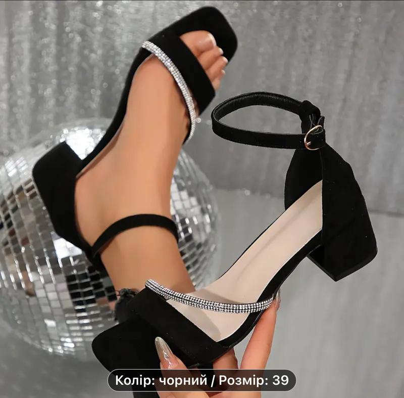 Высота каблука:Низкий ,Застежка:Ремешок ,Декор:Стразы ,Тип каблука:Толстый ,Сезон:Лето ,Стиль:Повседневный ,Тип подошвы:Каблук ,Форма носка:Квадратный ,Длина стельки:24,5 ,Описание