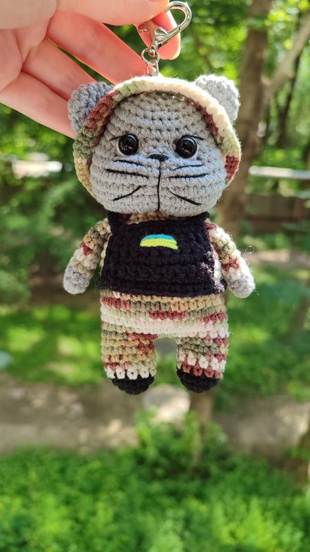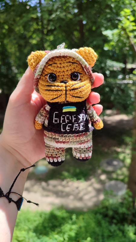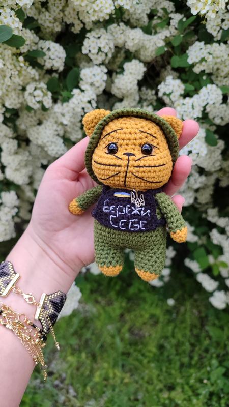 Вязаный брелок котик ЗСУ. Предохранение для военного. Размер 14 см. Ручная работа.