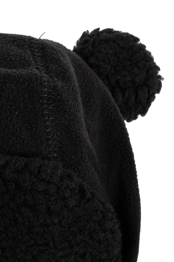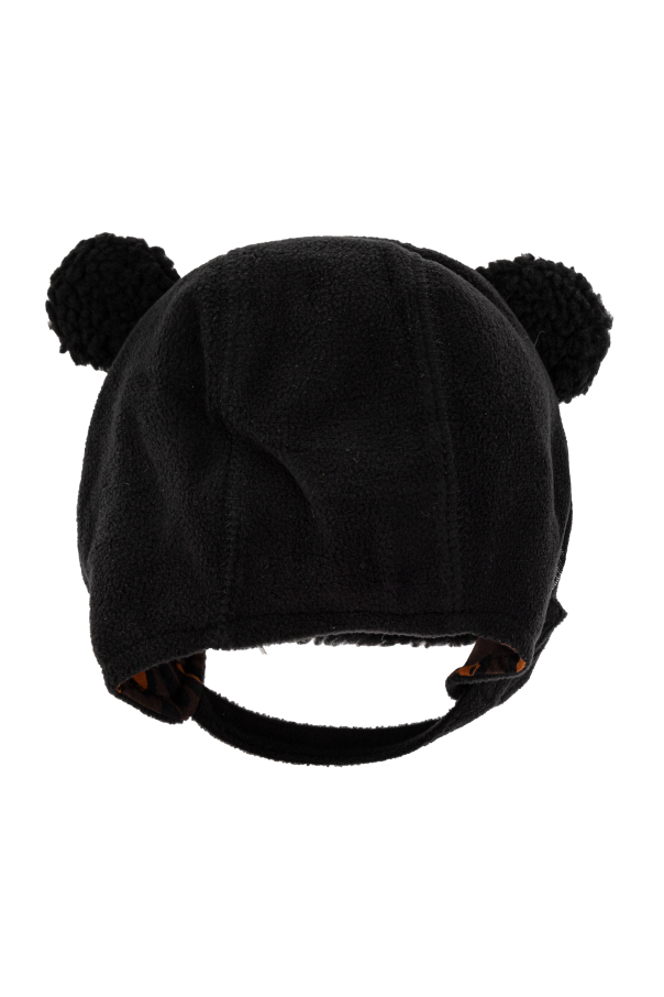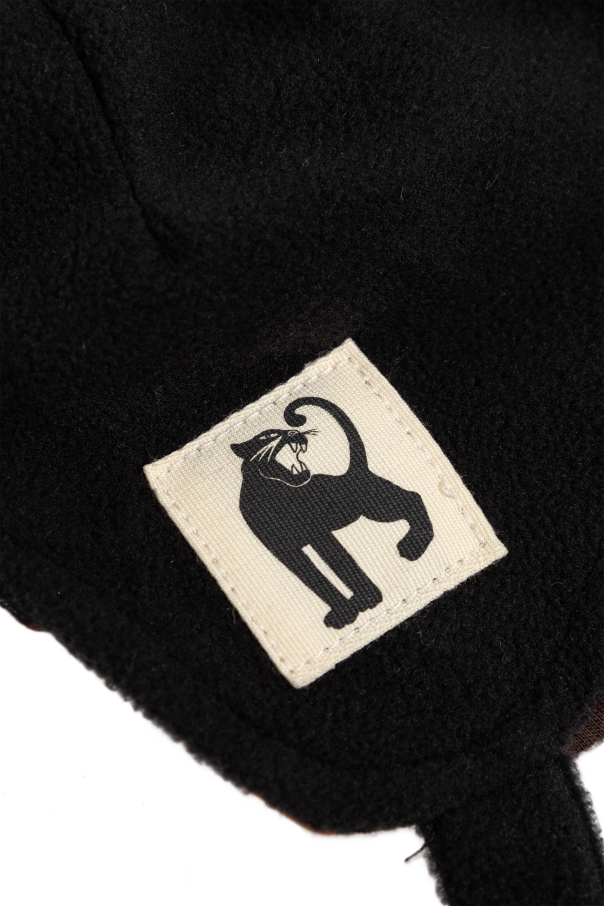 Introducing the Mini Rodini Earmuff Hat, a sophisticated accessory from the exclusive children\'s collection by Mini Rodini. This black hat seamlessly combines charm and functionality, making it a perfect addition to any child\'s wardrobe. Crafted from 100% recycled polyester, the hat features a traditional design with earflaps to provide warmth and protection against the cold. The two rounded furry ears add a playful touch, while the rectangular patch with a cat design on one earflap signifies the designer\'s hallmark. The hat is secured with a velcro chin strap for a snug and stable fit, ensuring comfort during wear. The interior showcases a stylish orange-black patterned lining, enhancing its overall appeal. Why Choose This Product? Elegant and playful design with furry ears Made from sustainable, recycled materials Provides superior warmth and comfort Adjustable fit with a secure velcro strap Stylish interior lining with unique patterns