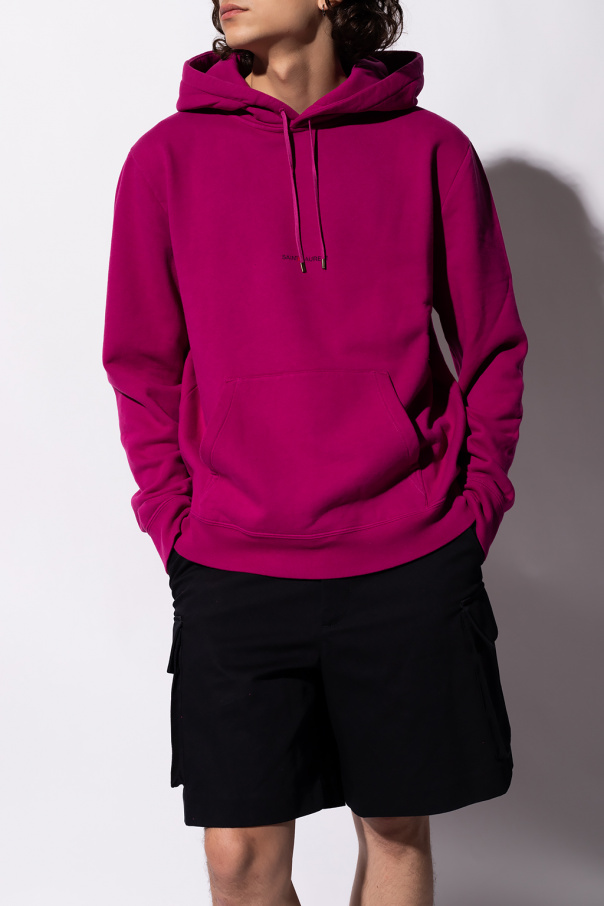 Dark pink sweatshirt with a drawcord-adjustable hood from Saint Laurent. Crafted from cotton jersey, this hoodie showcases a graphic print with the brand's logo, a kangaroo pocket and elasticized trims.