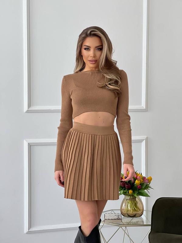 Ваше любимое сочетание - укороченный топ и мини юбка плиссе😍