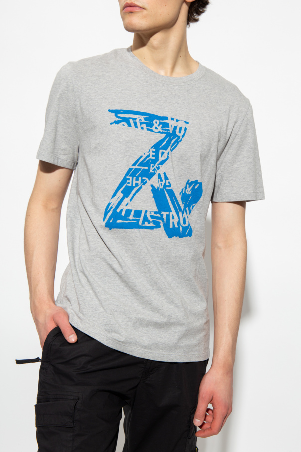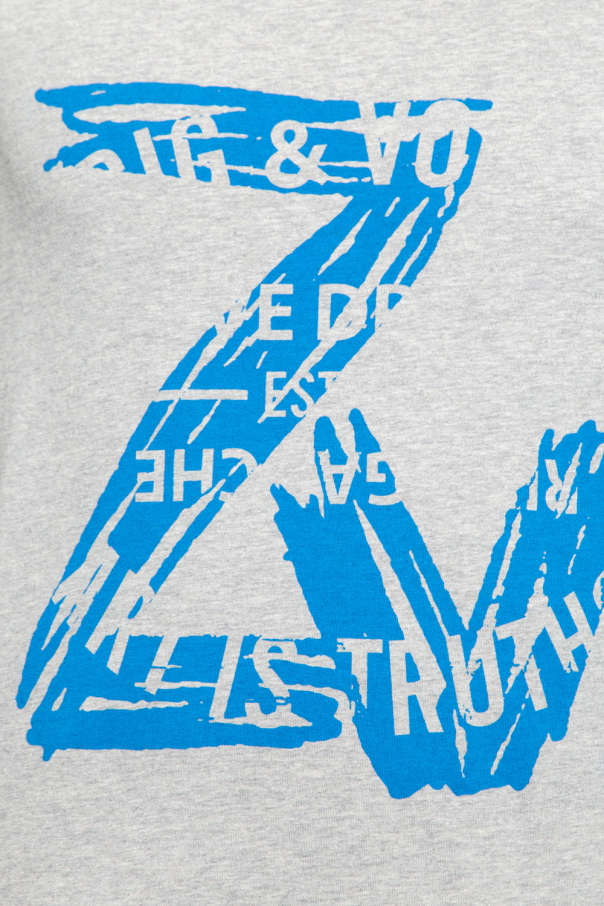 Grey ‘Tommy New’ crewneck T-shirt from Zadig & Voltaire. Made of cotton, this style features short sleeves and the brand\'s logo printed in blue on the front.