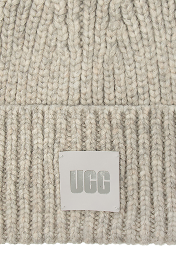 Grey hat from UGG. Crafted from wool in a rib-knit design, this winter-savvy garment showcases logo patch on the front for the brand recognition.