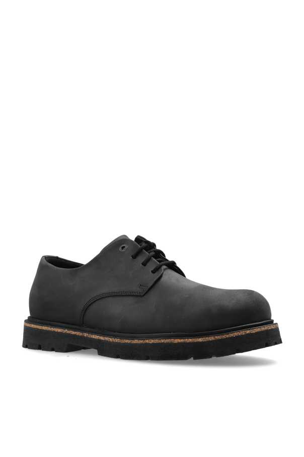 Introducing the exquisite Highwood Lace Low shoes from the illustrious Birkenstock collection. A true embodiment of elegance, these shoes boast a dominant black hue, perfectly capturing the essence of timeless sophistication. The classic low-profile lace-up design features a rounded front, exuding an understated elegance. Crafted from premium suede, the external layer ensures durability and a touch of luxury, while the interior, lined with high-quality materials, promises comfort. The robust rubber sole, adorned with a contrasting stripe, not only enhances style but also guarantees exceptional grip with its pronounced tread. Inside, a signature blue insole with the Birkenstock logo offers standard width for optimal support. Ideal for daily wear, these shoes seamlessly blend style and comfort, catering to those who appreciate both form and function. Why choose this product? Timeless and elegant design. Crafted from premium materials. Exceptional grip with a durable sole. Comfortable standard-width insole.