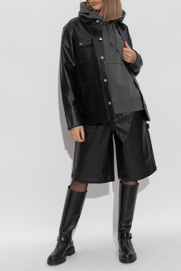 Introducing the Eco Leather Jacket by Carhartt WIP, a timeless garment that exudes sophistication and elegance. Crafted from premium eco leather, this jacket boasts a sleek and polished appearance, offering both style and environmental consciousness. Its classic, straight cut is complemented by a refined shirt collar and a button closure, making it a versatile addition to your wardrobe. The jacket features four strategically placed pockets for practicality and style. Two large pockets grace the chest, one adorned with a buttoned flap, while the other two are positioned lower down for ease of access. A subtle logo patch elegantly embellishes the left chest pocket, infusing the piece with brand identity. On the back, a single seam adorns the jacket, maintaining its minimalistic allure. This exquisite piece is perfect for various casual or semi-formal occasions, embodying the essence of Carhartt WIP\'s commitment to quality, durability, and comfort. Why Choose This Product? Refined design with a classic shirt collar and button closure. Crafted from eco leather for a sleek, polished look. Four practical pockets, including a buttoned flap chest pocket. Subtle brand logo for a touch of identity. Minimalistic back design with a single seam.